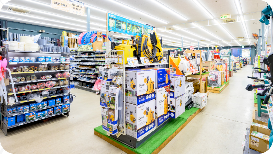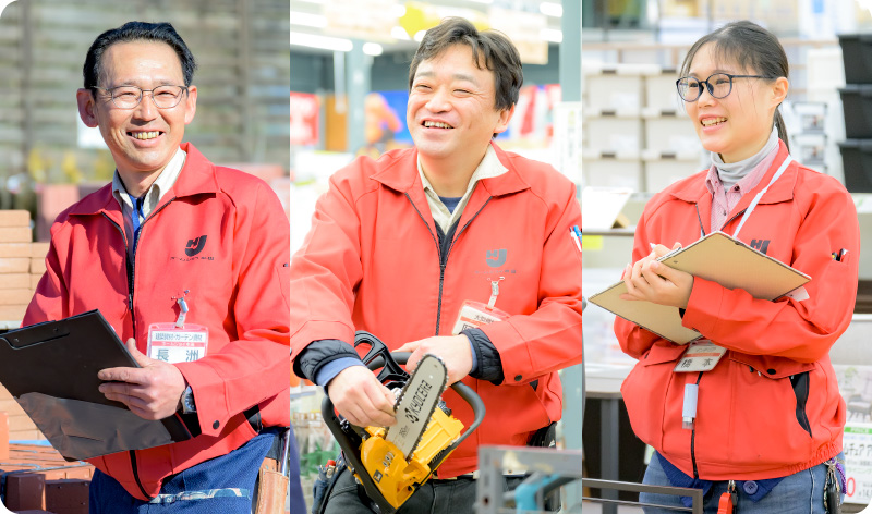 地域の人々やプロフェッショナルの職人さんたちのために、日用消耗品から資材関連、ガーデン、ペット、オフィスなど多彩な分野の商品とサービスを展開。専門性の高い各部門担当者が皆さまのお困りごとに対応します。